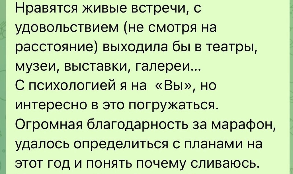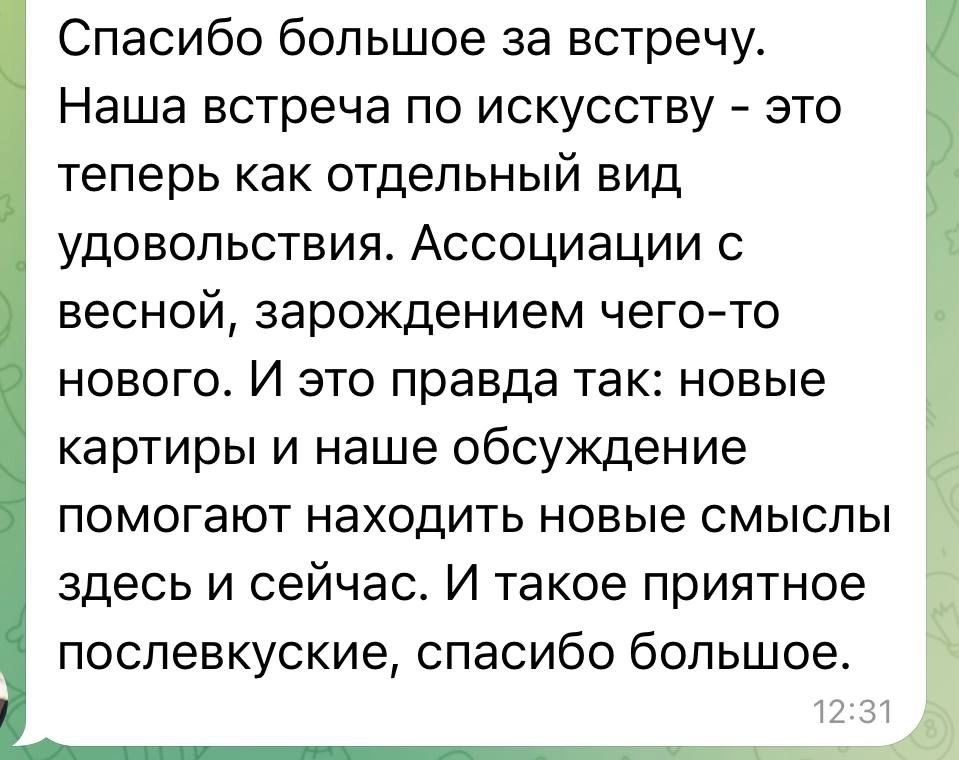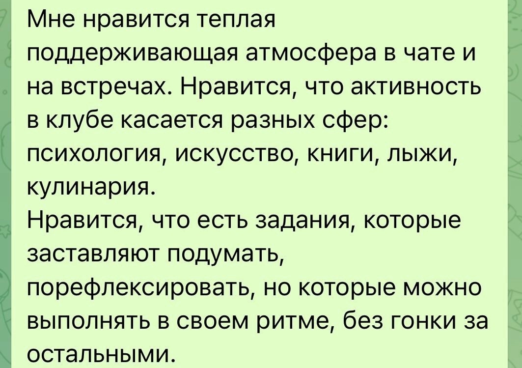 Это место, где уважают психологию, хотят разбираться в искусстве, стремятся расширить свои горизонты, проявляться.
